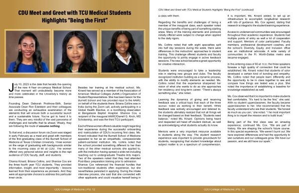 CDU Meet and Greet with TCU Medical Students Highlights“ Being the First”( continued) a class with them.