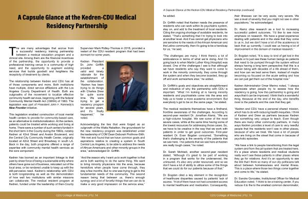 A Capsule Glance at the Kedren-CDU Medical Residency Partnership( continued) he added.