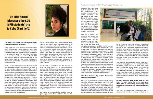 Dr. Bita Amani Discusses the CDU MPH students’ trip to Cuba( Part 1 of 2)
