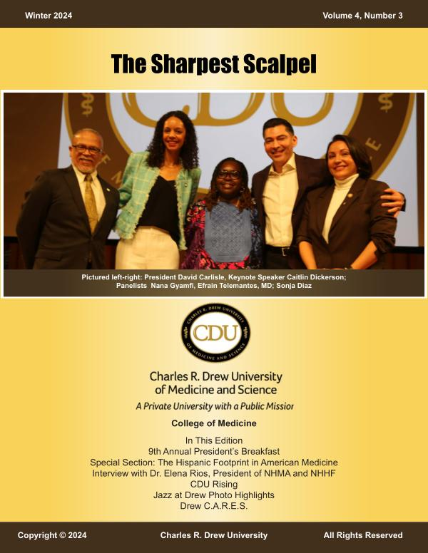 In This Edition 9th Annual President’ s Breakfast Special Section: The Hispanic Footprint in American Medicine Interview with Dr. Elena Rios, President of NHMA and NHHF CDU Rising Jazz at Drew Photo Highlights Drew C. A. R. E. S.