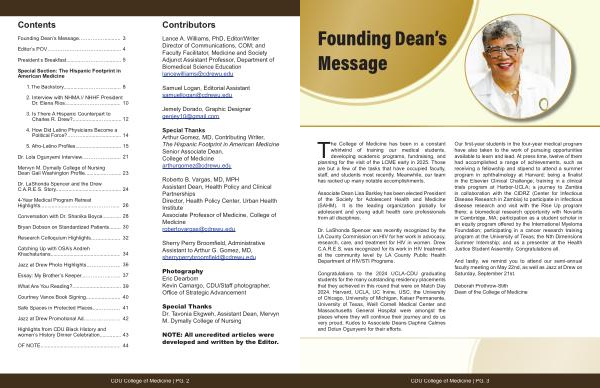 Special Thanks Arthur Gomez, MD, Contributing Writer, The Hispanic Footprint in American Medicine Senior Associate Dean, College of Medicine arthurgomez @ cdrewu. edu