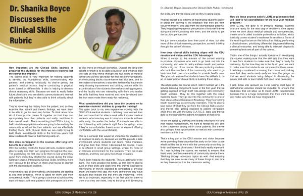 How does clinical skills training aligns with the CDU mission and vision and the CDU Advantage? When it comes to the mission of the school wanting to produce physicians who want to go back out into the community, who want to really address health and justice, that is a big part of our course. We are producing students who look like members of the community, who want to go back into their own communities to provide health care. The goal is to ensure that students have the skillsets to do so. A major part of clinical skills is building those steps.