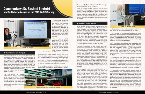 With respect to impact, the timing of the 2023 survey was an important endeavor since the last previous survey was conducted in 2018 prior to COVID-19. According to Los Angeles County Department of Public Health Chief Science Officer Dr. Rashmi Shetgiri,“ The intent was to provide information that community-based organizations, public health organizations, and the public can use. The survey provided an opportunity to assess the current state of health in LA County, and look at trends and health inequities, with the goal of developing ways to address them to ensure better outcomes.”