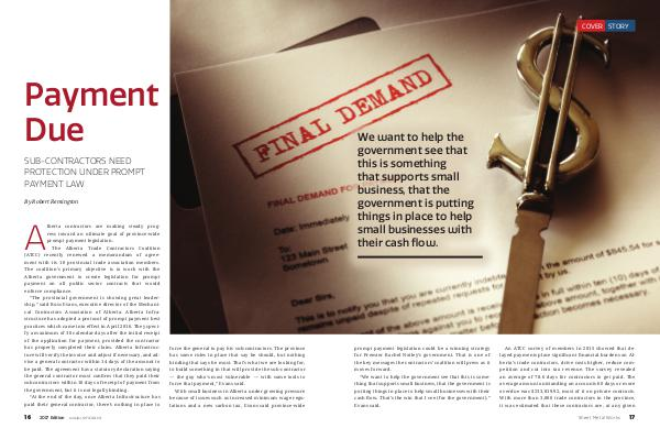 prompt payment legislation could be a winning strategy for Premier Rachel Notley’ s government. That is one of the key messages the contractors’ coalition will press as it moves forward.