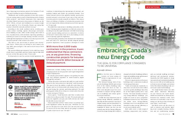 He added that momentum is building nationally on the issue. Prompt payment legislation on federal contracts is winding its way through Parliament with Bill S-224 having passed second reading and now in committee. A review of Ontario’ s Construction Lien Act is also looking at some form of prompt payment legislation.