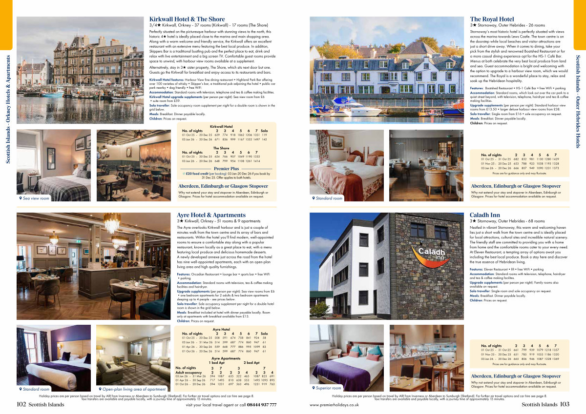 Why not extend your stay and stopover in Aberdeen, Edinburgh or Glasgow. Prices for hotel accommodation available on request.