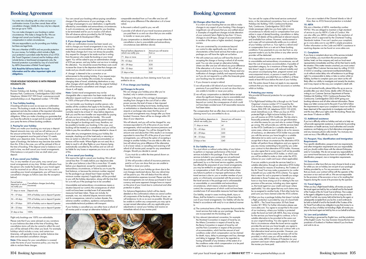 YOUR HOLIDAY BOOKING IS WITH PREMIER HOLIDAYS LTD.