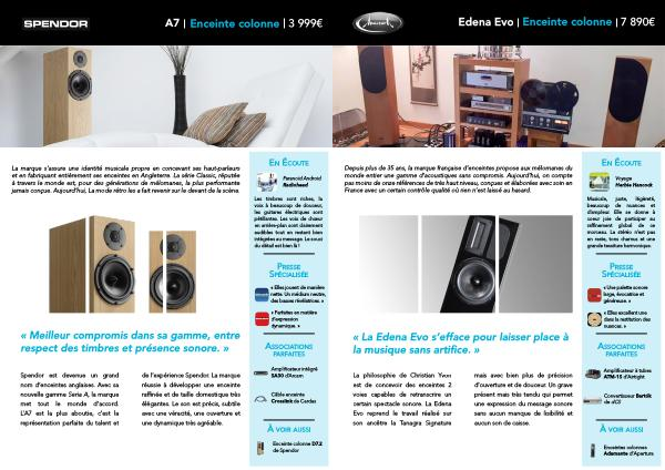Depuis plus de 35 ans , la marque française d ’ enceintes propose aux mélomanes du monde entier une gamme d ’ acoustiques sans compromis . Aujourd ’ hui , on compte pas moins de onze références de très haut niveau , conçues et élaborées avec soin en France avec un certain contrôle qualité où rien n ’ est laissé au hasard .