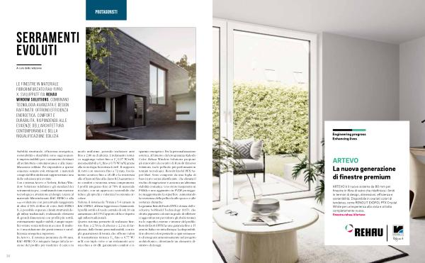 Stabilità strutturale, efficienza energetica, sostenibilità e durabilità sono oggi requisiti imprescindibili per i serramenti destinati all’ architettura contemporanea e alla riqualificazione edilizia. Per rispondere a queste esigenze sempre più stringenti, i materiali compositi fibrorinforzati rappresentano una delle soluzioni più evolute. Con i sistemi Artevo e Neferia, Rehau Window Solutions ridefinisce gli standard dei serramenti in pvc, combinando innovazione tecnologica e attenzione al design. Grazie al materiale fibrorinforzato RAU-FIPRO e alla sua evoluzione con percentuale maggiorata di oltre il 50 % di fibre di vetro, RAU-FIPRO X, è possibile superare i limiti strutturali degli infissi tradizionali, realizzando elementi di grandi dimensioni con profili più sottili, estremamente rigidi e stabili, e ampie superfici vetrate senza rinforzi in acciaio. Il risultato è una riduzione dei ponti termici e un’ efficienza energetica superiore. In Artevo, il sistema premium da 80 mm, RAU-FIPRO X è integrato lungo tutta la sezione del profilo per trasferire il carico in modo uniforme, potendo realizzare ante fino a 2,80 m di altezza. L’ isolamento termico raggiunge valori fino a U f