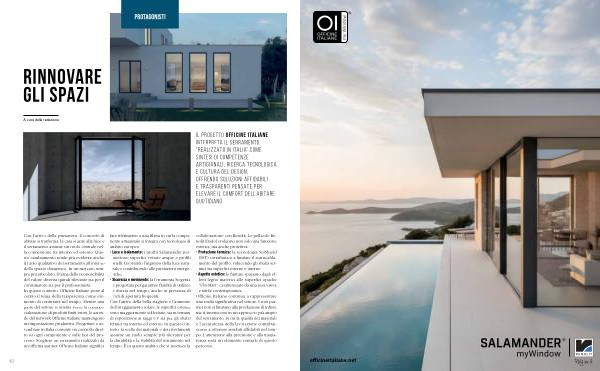 IL PROGETTO OFFICINE ITALIANE INTERPRETA IL SERRAMENTO“ REALIZZATO IN ITALIA” COME SINTESI DI COMPETENZE ARTIGIANALI, RICERCA TECNOLOGICA E CULTURA DEL DESIGN, OFFRENDO SOLUZIONI AFFIDABILI E TRASPARENTI PENSATE PER ELEVARE IL COMFORT DELL’ ABITARE QUOTIDIANO