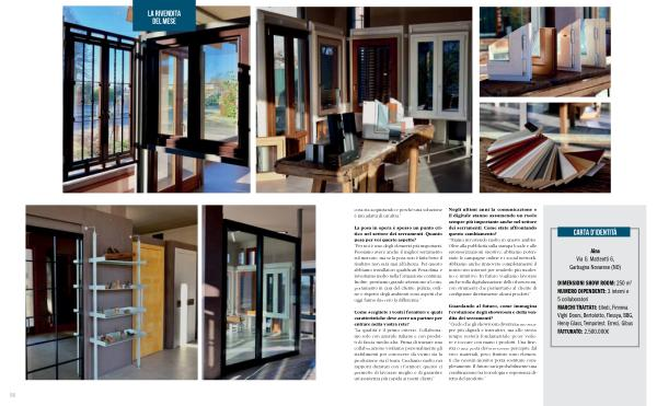 DIMENSIONI SHOW ROOM: 250 m 2 NUMERO DIPENDENTI: 3 interni e 5 collaboratori MARCHI TRATTATI: Elledi, Finnova, Vighi Doors, Bertolotto, Flessya, BBG, Henry Glass, Tempotest, Erreci, Gibus FATTURATO: 2.500.000 €