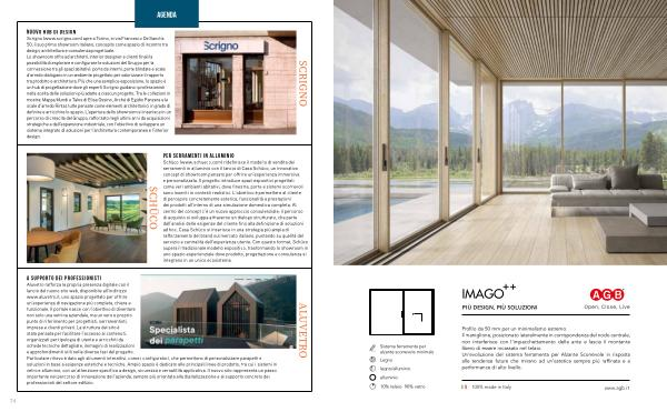 Profilo da 50 mm per un minimalismo estremo. Il maniglione, posizionato lateralmente in corrispondenza del nodo centrale, non interferisce con l’ impacchettamento delle ante e lascia il montante libero di essere incassato nel telaio. Un’ evoluzione del sistema ferramenta per Alzante Scorrevole in risposta alle tendenze future che mirano ad un’ estetica sempre più raffinata e a performance di alto livello. alluminio 10 % telaio 90 % vetro www. agb. it