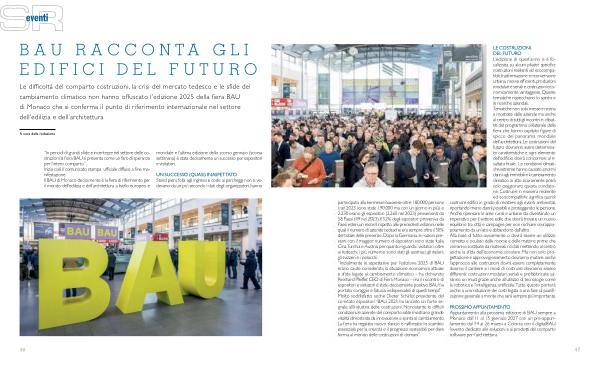 PROSSIMO APPUNTAMENTO Appuntamento alla prossima edizione di BAU sempre a Monaco dall ’ 11 al 15 gennaio 2027 con un pre-appuntamento dal 24 al 26 marzo a Colonia con il digitalBAU , l ’ evento dedicato alle soluzioni e ai prodotti del comparto software per l ’ architettura .