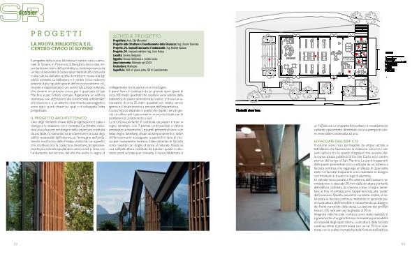 LE FACCIATE DELL ’ EDIFICIO Il volume viene reso permeabile da ampie vetrate a tutt ’ altezza che favoriscono la relazione visiva tra i versanti vallivi e tra lo spazio d ’ ingresso che avviene dalla nuova piazza pubblica di Via San Carlo ed il centro storico del borgo di San Martino . Le parti trasparenti delle pareti perimetrali sono costituite da un sistema a facciata continua , che raggiunge un ’ altezza di quasi sette metri . Le facciate trasparenti sono realizzate su disegno con montanti e traversi in lega di alluminio . Le vetrate sono posate a filo esterno dell ’ involucro architettonico e staccate 50 mm dalla struttura portante dell ’ edificio costituita da colonne e travi in legno lamellare , al fine di enfatizzarne l ’ appartenenza alla “ pelle ” dell ’ involucro . Questa soluzione consente , inoltre , di valorizzare la facciata continua , mettendo in secondo piano la struttura dell ’ immobile e consentendo un disegno dei fronti svincolato dalla stessa . La sezione dei profilati misura 105 mm per una larghezza di 50 m . Integrate nelle facciate continue sono state realizzati 6 ingressi / uscite , che garantiscono la massima permeabilità e inclusività degli spazi interni . La struttura della facciata continua infine è preverniciata con un ral 7016 in coerenza con le scelte cromatiche delle finiture dell ’ edificio .