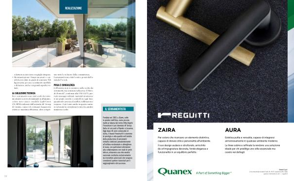 • Movimentazione: binari incassati e carrelli heavy-duty, in grado di sostenere 500 kg per anta, per uno scorrimento morbido e silenzioso, anche con grandi superfici vetrate.