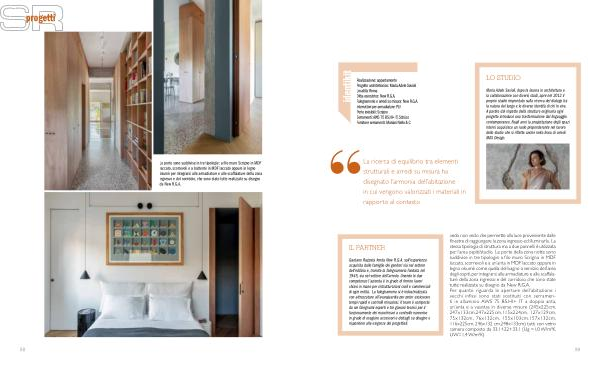 Le porte sono suddivise in tre tipologie: a filo muro Scrigno in MDF laccato, scorrevoli e a battente in MDF laccato oppure in legno okumè per integrarsi alle armadiature e alle scaffalature della zona ingresso e del corridoio, che sono state tutte realizzate su disegno da New R. G. A.