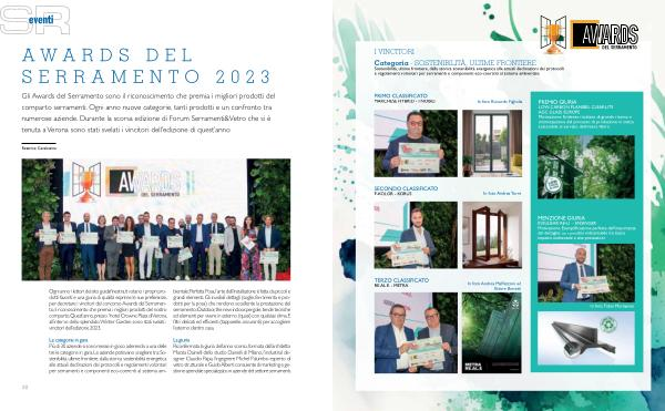 Gli Awards del Serramento sono il riconoscimento che premia i migliori prodotti del comparto serramenti . Ogni anno nuove categorie , tanti prodotti e un confronto tra numerose aziende . Durante la scorsa edizione di Forum Serramenti & Vetro che si è tenuta a Verona sono stati svelati i vincitori dell ’ edizione di quest ’ anno