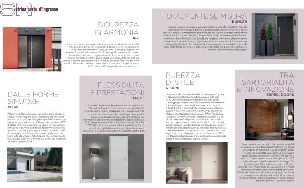 Design minimal e tecnologie innovative per proteggere l ’ ingresso di casa sono le caratteristicvhe della la nuova porta blindata D180 Dierre . Progettata per l ’ installazione filo-telaio , questa porta raggiunge una purezza di stile che rende facile l ’ inserimento in ambienti di gusto classico o più contemporanei con atout importanti anche in termini di efficienza energetica e isolamento acustico . In soli 7,7 cm di spessore le porte D180 garantiscono infatti una trasmittanza termica di serie di 1,3 W /( m 2 K ), che può scendere a 1,0 W /( m 2 K ), mentre l ’ abbattimento acustico è di 38 dB , che diventano 42 dB grazie a un kit dedicato . Merito della scocca a doppia lamiera in acciaio zincato a freddo , che unita allo speciale “ sandwich ” isolante ideato dai ricercatori Dierre forma un monoblocco a elevate prestazioni . La tecnologia dell ’ anta si unisce a quella delle cerniere a scomparsa di nuova concezione che , come suggerisce il nome della porta , consentono un ’ apertura a 180 ° e una doppia battuta di chiusura che , in combinazione con il kit soglia mobile , impedisce l ’ ingresso a spifferi e rumori .