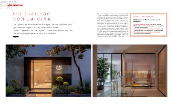 Situato nel vivace Jing An district, il nuovissimo spazio di 150 m 2 inaugurato lo scorso mese di giugno offre una ricchezza cromatica unica, capace di suscitare svariate suggestioni visive. Il visitatore viene introdotto nel mondo di Glas Italia attraverso in un vero e proprio percorso tecnico-tematico e una sequenza di ambienti che alternano proposte recenti a pezzi iconici, arredi di gusto minimale ad altri dichiaratamente più decorativi, tutti disegnati dai più rinomati maestri del design contemporaneo. Lo showroom, oltre a porsi un vero e proprio hub per i professionisti di settore, intende rivolgersi anche al grande pubblico. Ed è questa doppia funzione che ha guidato la definizione e l’ approntamento degli spazi e la selezione dei prodotti esposti. Ne abbiamo parlato con Alessandra Arosio, Presidente CDA di Glas Italia.