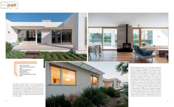 GMG Arquitectos ha dato vita a una residenza che mette a frutto l ’ impiego di tecnologie evolute per consentire un risparmio energetico complessivo e un impatto sull ’ ambiente praticamente irrilevante . La villa ha infatti consumo energetico quasi nullo ( NZEB ) ed è progettata e realizzata secondo criteri Passivhaus e bioclimatici . L ’ impianto planimetrico è piuttosto semplice con due corpi uniti da un volume di collegamento a definire una C aperta sul fronte del giardino esterno allestito in puro stile mediterraneo poiché non necessita di particolare manutenzione e irrigazione in quanto sono state usate specie vegetali autoctone della zona . All ’ interno del giardino , nella parte di edificio prospicente il patio coperto è presente una piscina a una quota leggermente inferiore . Tutto intorno si sviluppa appunto un ’ area verde composta da vegetazione , arbusti e percorsi pedonali ben integrati . Lo sviluppo orizzontale dell ’ edificio e la sua altezza contenuta permettono una maggiore integrazione nel contesto . L ’ involucro è stereometrico e rigoroso , completamente bianco se si eccettua una porzione e un cordolo rivestiti in pietra che