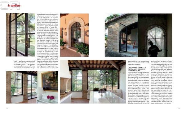 L ’ ARTIGIANALITÀ CHE C ’ È DIETRO A UN INFISSO IN FERRO-FINESTRA Nella commessa erano presenti degli infissi ad arco irregolare , l ’ arco era stato fatto tanto tempo fa e aveva una forma che era impossibile da riprodurre senza creare una dima . La prima cosa che abbiamo fatto è stata munirci di un pannello in legno , disegnare l ’ arco e sagomare un tondino di acciaio con la stessa forma per poi “ bloccarlo ” con dei distanziali saldati a esso . Con questa dima abbiamo poi calandrato i profili e creato il vero telaio dell ’ infisso . Una volta saldatolo siamo tornati in cantiere per provarlo , era importante fare questa prova prima di completare l ’ infisso per poter apportare eventuali modifiche alla raggiatura . Una volta trovato il livello di accuratezza necessario siamo tornati in officina e abbiamo costruito al suo interno il resto dell ’ infisso , le parti fisse e le parti apribili anch ’ esse ad arco ma questa volta avevamo il telaio fisso come dima perfetta . Una delle caratteristiche volute dai committenti era lo stile inglese che ricreasse anch ’ esso l ’ estetica degli infissi come una volta . Lo abbiamo fatto non “ tagliando ” il vetro come si faceva 50 anni fa ma creando delle cornici sia nella parte esterna che interna . Una volta era necessario creare lo stile inglese per necessità , per avere dei vetri più piccoli perchè la tecnologia del vetro non permetteva grandi formati . Fare la stessa cosa oggi sarebbe deleterio per la prestazione termica perchè aumenterebbe a dismisura il ponte termico lineare dei canalini ( anche se termici ). Inoltre , tanti piccoli vetri sono difficoltosi da tassellare / caricare rendendo l ’ infisso meno stabile nel tempo oltre che a peggiorarne tanto la prestazione termica . Per dare un ulteriore tocco retrò abbiamo creato una scatola serratura come si faceva in passato e questa volta il vetro è stato sagomato per “ girare ” attorno alla stessa e insieme ad una maniglia in ottone va a enfatizzare quel “ romanticismo ” che hanno queste soluzioni ferro-finestra .