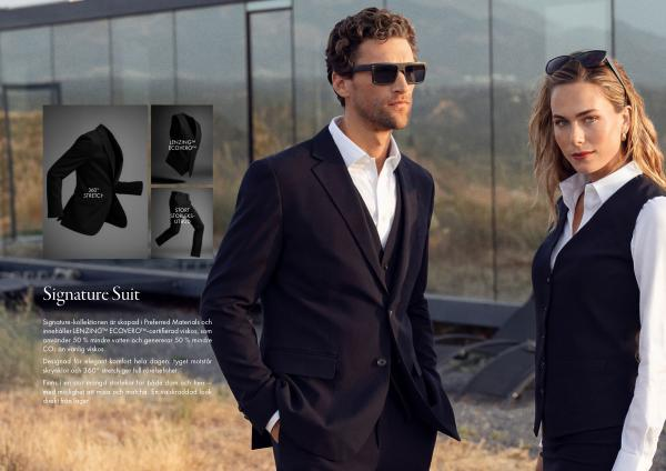 Signature-kollektionen är skapad i Preferred Materials och innehåller LENZING™ ECOVERO™-certifierad viskos, som använder 50 % mindre vatten och genererar 50 % mindre CO₂ än vanlig viskos.