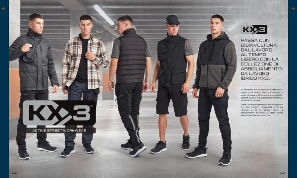 PASSA CON DISINVOLTURA DAL LAVORO AL TEMPO LIBERO CON LA COLLEZIONE DI ABBIGLIAMENTO DA LAVORO IBRIDO KX3 .