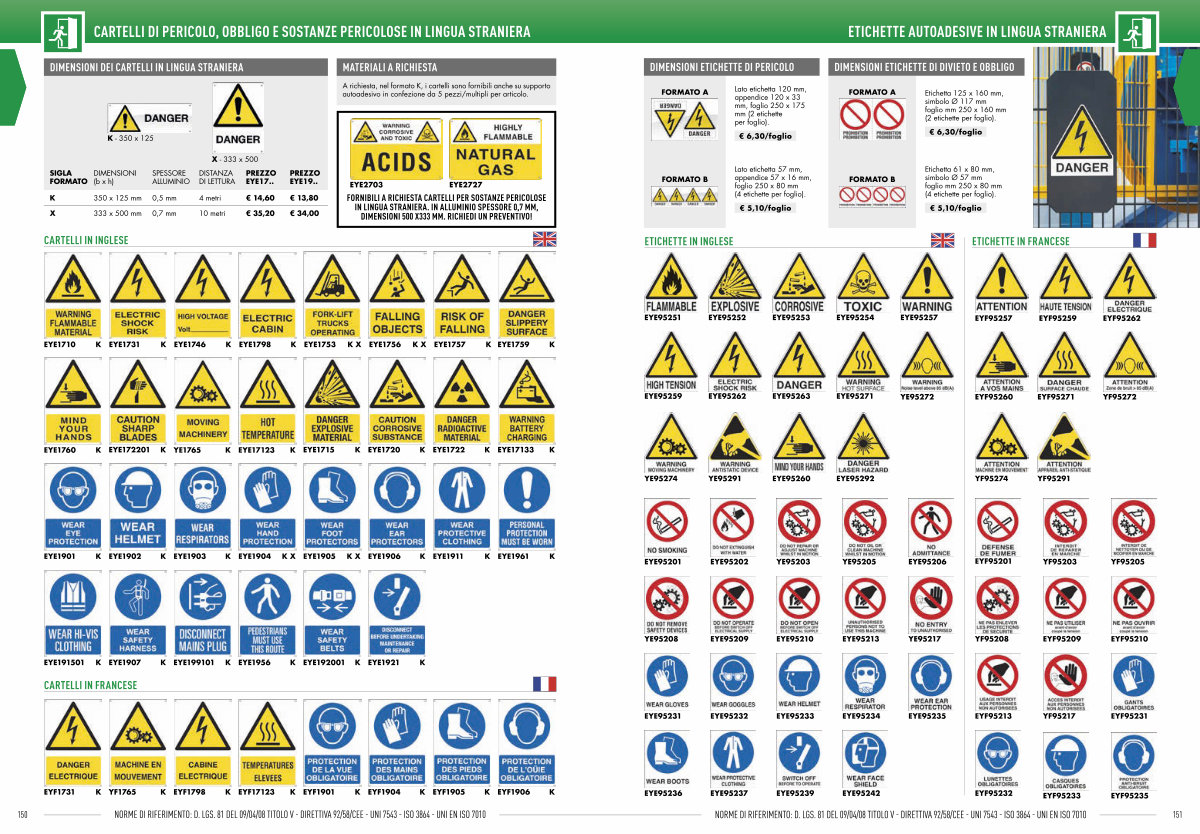 CARTELLI DI PERICOLO, OBBLIGO E SOSTANZE PERICOLOSE IN LINGUA STRANIERA