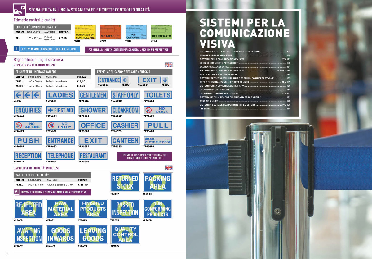 SEGNALETICA IN LINGUA STRANIERA ED ETICHETTE CONTROLLO QUALITÀ