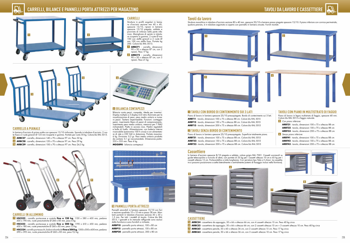 CARRELLI, BILANCE E PANNELLI PORTA ATTREZZI PER MAGAZZINO