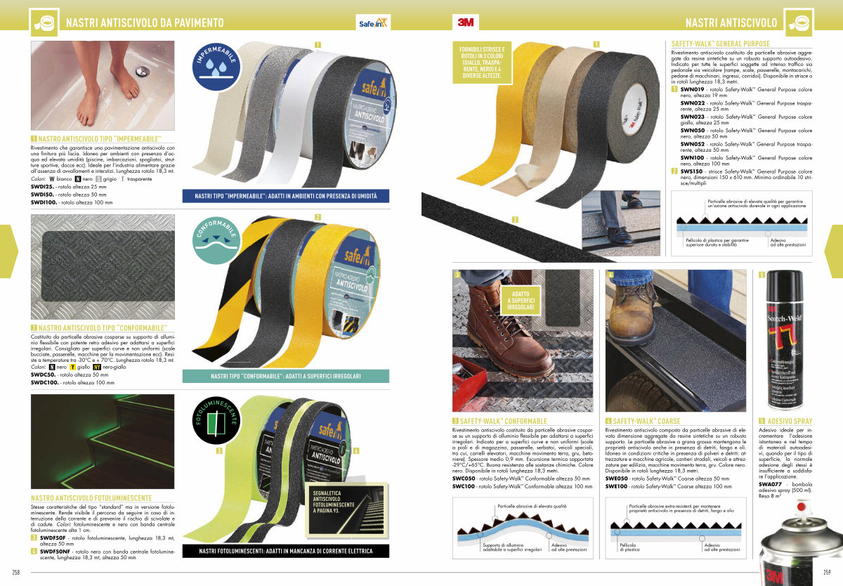 Rivestimento antiscivolo costituito da particelle abrasive aggregate da resine sintetiche su un robusto supporto autoadesivo. Indicato per tutte le superfici soggette ad intenso traffico sia pedonale sia veicolare( rampe, scale, passerelle, montacarichi, pedane di macchinari, ingressi, corridoi). Disponibile in strisce o in rotoli lunghezza 18,3 metri.