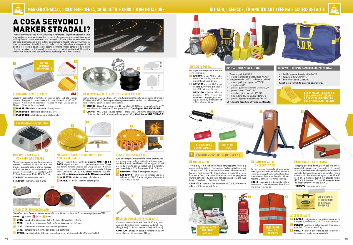 MARKER STRADALI, LUCI DI EMERGENZA, CATADIOTTRI E CHIODI DI DELIMITAZIONE