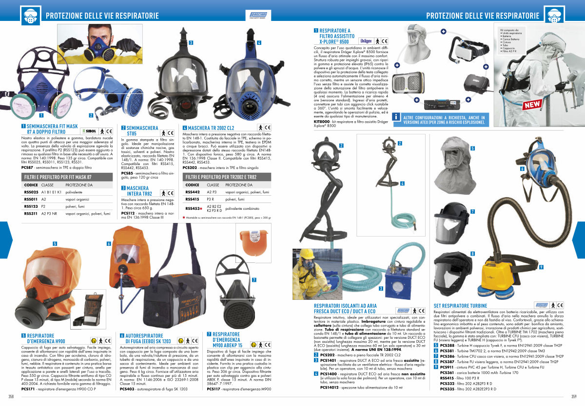 PCS361- carica batterie 1000 mAh-Turbine 170 RSS415- filtro 100 P3 R PCS332- filtro 202 A2B2P3 R D PCS335- filtro 202 A2B2E2P3 R D
