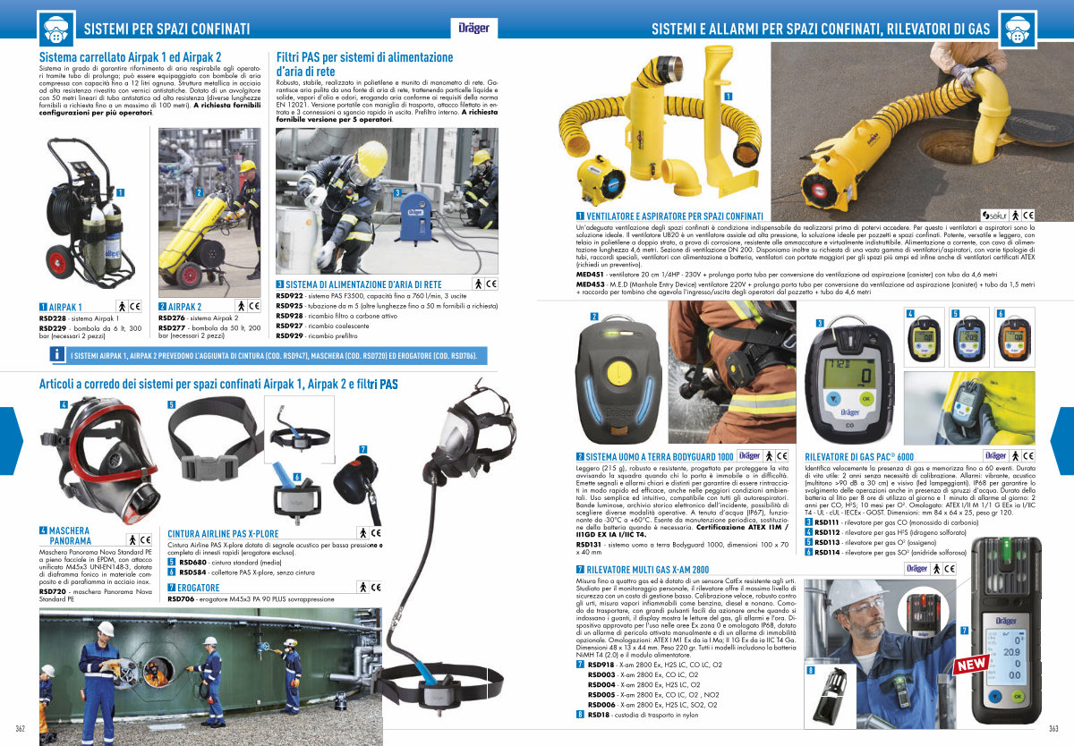 Articoli a corredo dei sistemi per spazi confinati Airpak 1, Airpak 2 e filtri PAS