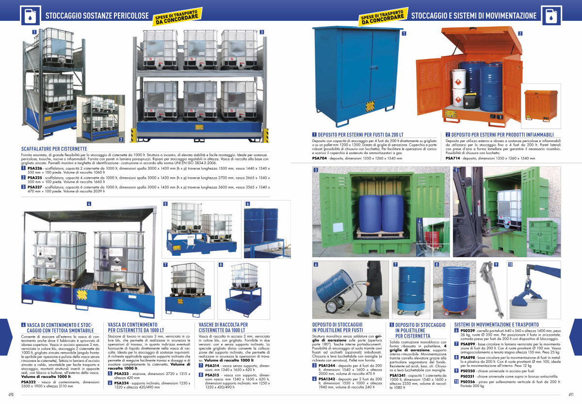 4 PSA1342- deposito per 2 fusti da 200 lt, dimensioni 1550 x 1000 x altezza 1940 mm, volume di raccolta 240 lt