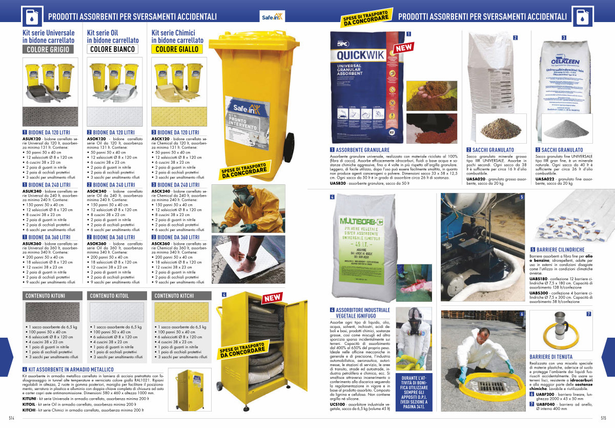 Barriere assorbenti a fibra fine per olio o benzine; idrorepellenti, adatte per uso in esterni in condizioni disagiate come l’ utilizzo in condizioni climatiche avverse.
