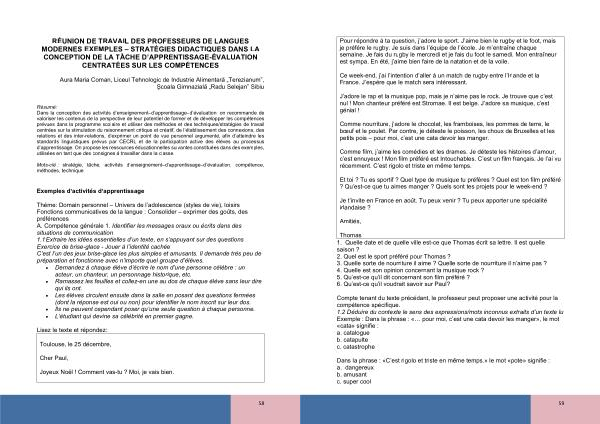 Thomas 1 . Quelle date et de quelle ville est-ce que Thomas écrit sa lettre . Il est quelle saison ? 2 . Quel est le sport préféré pour Thomas ? 3 . Quelle sorte de nourriture il aime ? Quelle sorte de nourriture il n ’ aime pas ? 4 . Quelle est son opinion concernant la musique rock ? 5 . Qu ’ est-ce qu ’ il dit concernant son film préféré ? 6 . Qu ’ est-ce qu ’ il voudrait savoir sur Paul ?