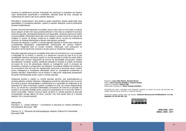 Bibliografie : Păunescu , C ., Copilul deficient – cunoașterea și educarea lui , Editura Știinţifică și Enciclopedică , București , 1983