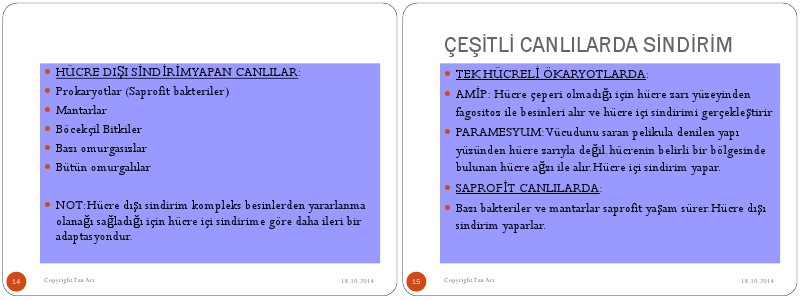 ÇEŞİTLİ CANLILARDA SİNDİRİM