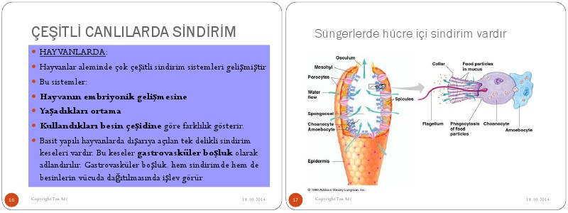Süngerlerde hücre içi sindirim vardır 17 Copyright Tzn Arc 18.10.2014