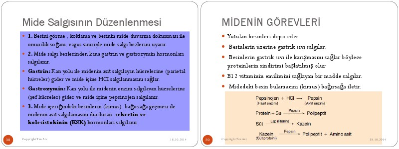 2. Mide salgı bezlerinden kana gastrin ve gastrozymin hormonları