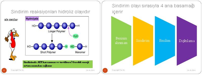 Sindirim olayı sırasıyla 4 ana basamağı içerir Besinin alınması 7 Copyright Tzn Arc Sindirim Emilim Dışkılama 18.10.2014