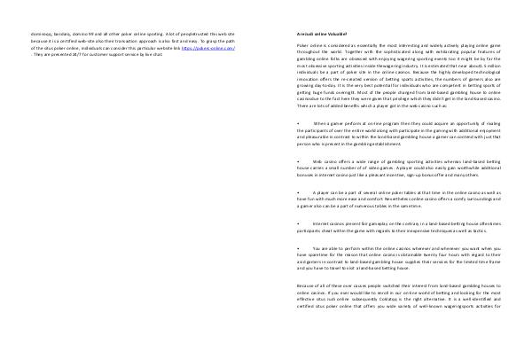 individuals be a part of poker site in the online casinos. Because the highly developed technological