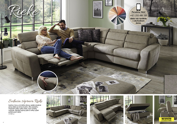 kostra z kovu a tvrdého dreva, sedák studená pena alebo pružinové jadro. Bez príplatku možnosť voľby výšky sedu, typu a farby nožičiek. Bohatý typový plán a veľký výber poťahových látok.