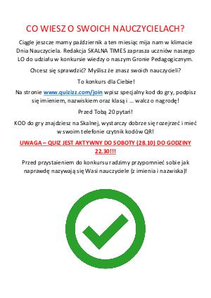 Dnia Nauczyciela. Redakcja SKALNA TIMES zaprasza uczniów naszego