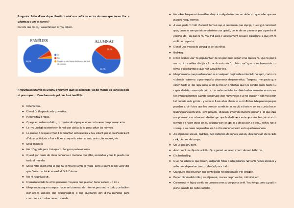 Pregunta a les famílies: Descriu breument quins aspectes de l'ús del mòbil i les xarxes socials