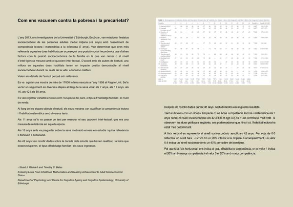 A l’eix vertical es representa el nivell socioeconòmic assolit als 42 anys. Per sota de 0.0