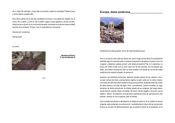 Hoy no os escribo esta carta por placer sino que lo hago porque siento la necesidad de