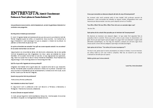 professora i estic encantada de treballar en aquest institut. M’agradaria tenir unes
