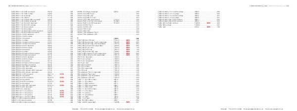 TUBA distance 111x1 230V surface.......................... 45602......................................... 260 TUBA distance 111x1 surface................................... 45603......................................... 260 TUBA distance 111x2 230V surface.......................... 45632......................................... 261 TUBA distance 111x2 surface................................... 45630......................................... 261 TUBA distance 50x1 230V surface............................ 45941......................................... 263 TUBA distance 50x2 230V surface............................ 45935......................................... 263 TUBA LED hermetic surface...................................... TU0814................ NEW............... 408 TUBA LED surface..................................................... TU0014....................................... 262 TUBA wall................................................................... 20102.................. NEW............... 186